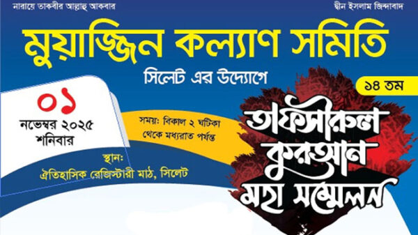 সিলেট ইয়াং স্টার কেন্দ্রীয় কমিটির অর্থ সম্পাদক শহীদুল ইসলাম নোমানকে সংবর্ধনা প্রদান মুয়াজ্জিন কল্যাণ সমিতি সিলেটের তাফসিরুল কুরআন মহাসম্মেলন-১ নভেম্বর শনিবার নিম্নতম মজুরির গেজেট বাস্তবায়নের দাবিতে জেলা প্রশাসক বরাবর সিলেট জেলা হোটেল শ্রমিক ইউনিয়নের স্মারকলিপি ১১ দফা দাবিতে-সিলেট চৌহাট্টায় সড়ক অবরোধ করে আন্দোলনে ব্যাটারি রিকশা শ্রমিকরা মাহতাব আহমদ এর বাবার মৃত্যুতে নগরকান্দি হাতিডহর ছয়ত্রিশ উন্নয়ন ফোরামের শোক সিলেট মেট্রোপলিটন চেম্বার অব কমার্স এন্ড ইন্ডাস্ট্রি’র নিজস্ব ভবনের মূল স্থাপনার কাজ আনুষ্ঠানিক উদ্বোধন হবিগঞ্জ থেকে প্রতিদিন মিলবে আরও ১৫ মিলিয়ন ঘনফুট গ্যাস স্বচ্ছ রাজনৈতিক সংস্কৃতি গড়তে নতুন প্রজন্মকে অগ্রণী ভূমিকা রাখতে হবে : খন্দকার মুক্তাদির সিলেটে যুবদলের ৪৭তম প্রতিষ্ঠা বার্ষিকী পালন কর্মীর দেওয়া ১০ লাখ টাকার চেক ফেরত দিলেন বিএনপি নেতা