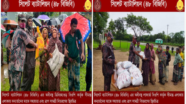 অনুসন্ধান নিউজ :: বিজিবি সদর দপ্তরের নির্দেশনা অনুযায়ী বন্যাদুর্গত স্থানীয় জনগণকে সহায়তার ধারাবাহিকতায় আজ ০৬ জুলাই সিলেট ব্যাটালিয়ন (৪৮ বিজিবি) এর অধীনস্থ নিম্নবর্ণিত বিওপি সমূহে বিজিবি কর্তৃক বন্যায় ক্ষতিগ্রস্থ ১৬১