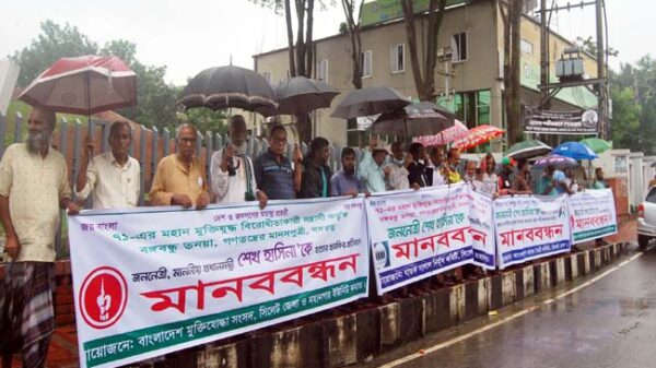 অনুসন্ধান নিউজ:: বঙ্গবন্ধু ৭১-এর মহান মুক্তিযুদ্ধ বিরোধীতাকারী জঙ্গি-সন্ত্রাসী কর্তৃক বঙ্গবন্ধুর তনয়া, প্রধানমন্ত্রী জননেত্রী শেখ হাসিনা’কে হত্যার হুমকির প্রতিবাদে বৃষ্টি উপেক্ষা করে বাংলাদেশ মুক্তিযোদ্ধা সংসদ সিলেট জেলা ও মহানগর ইউনিট,ঘাতক দালাল